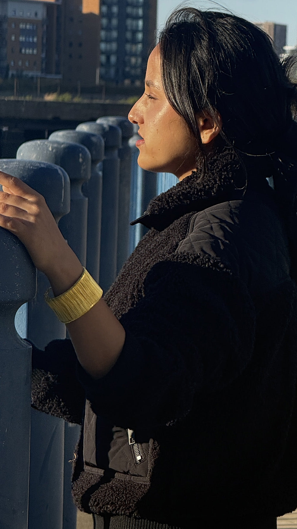 - Statement cuff bracelet in gold and silver by Urbiana.