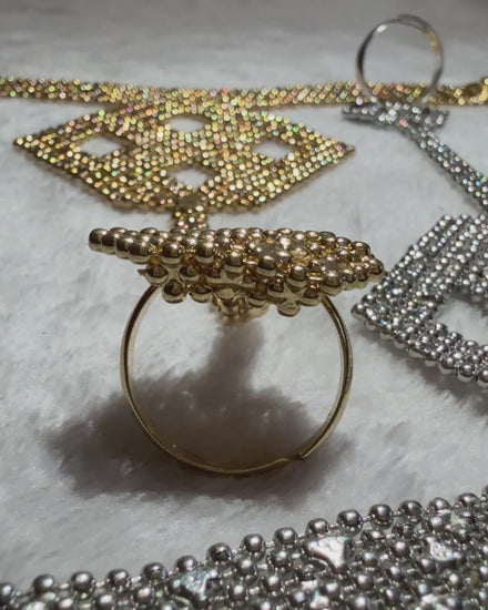 - This stunning gold and silver hand harness with an attached ring will make you stand out from the crowd.