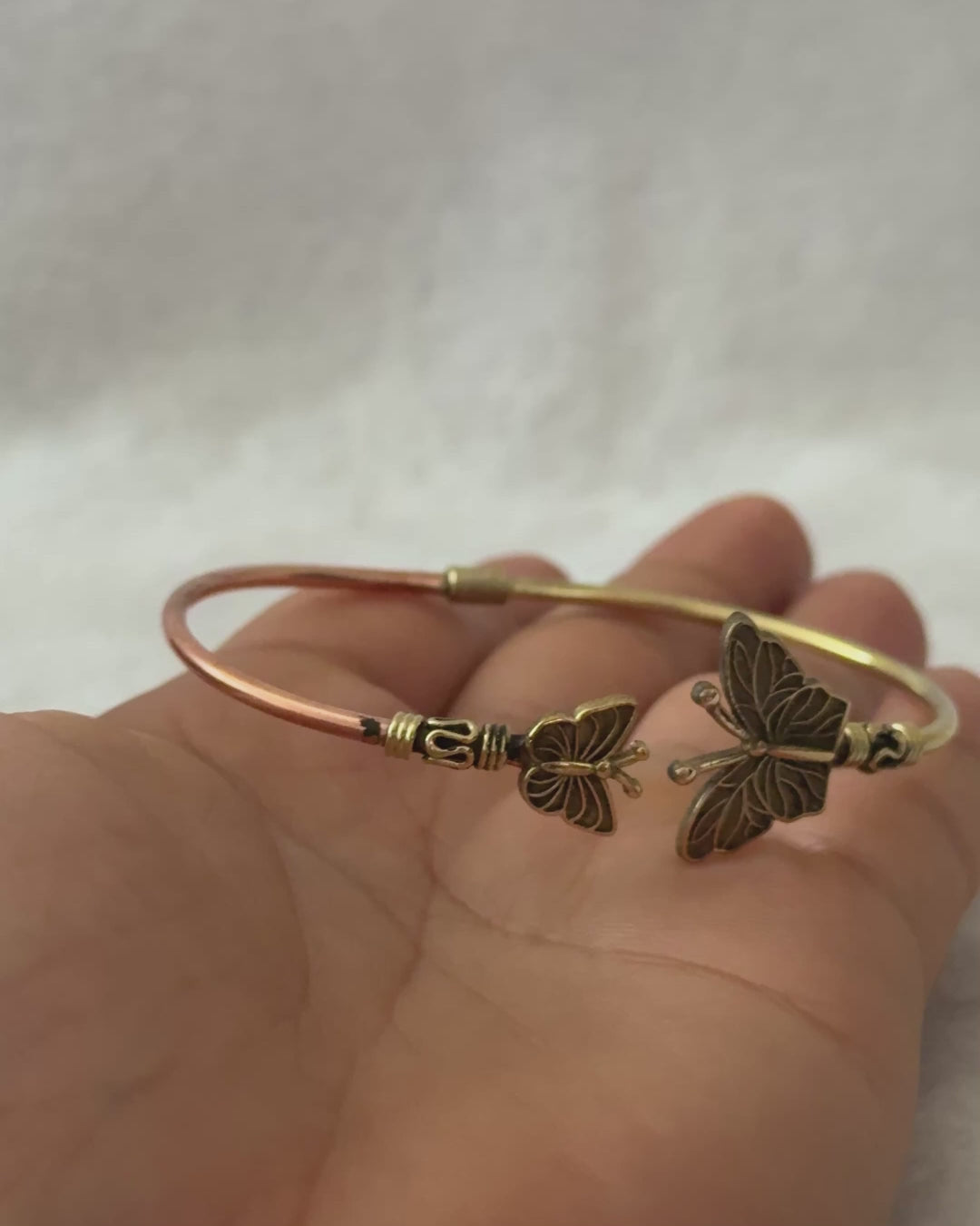 Embrace elegance and meaning with this beautifully crafted open cuff bracelet, featuring twin butterfly motifs. The butterfly, a timeless symbol of transformation, hope, and new beginnings, makes this piece more than just jewelry—it’s a reminder of growth and freedom.